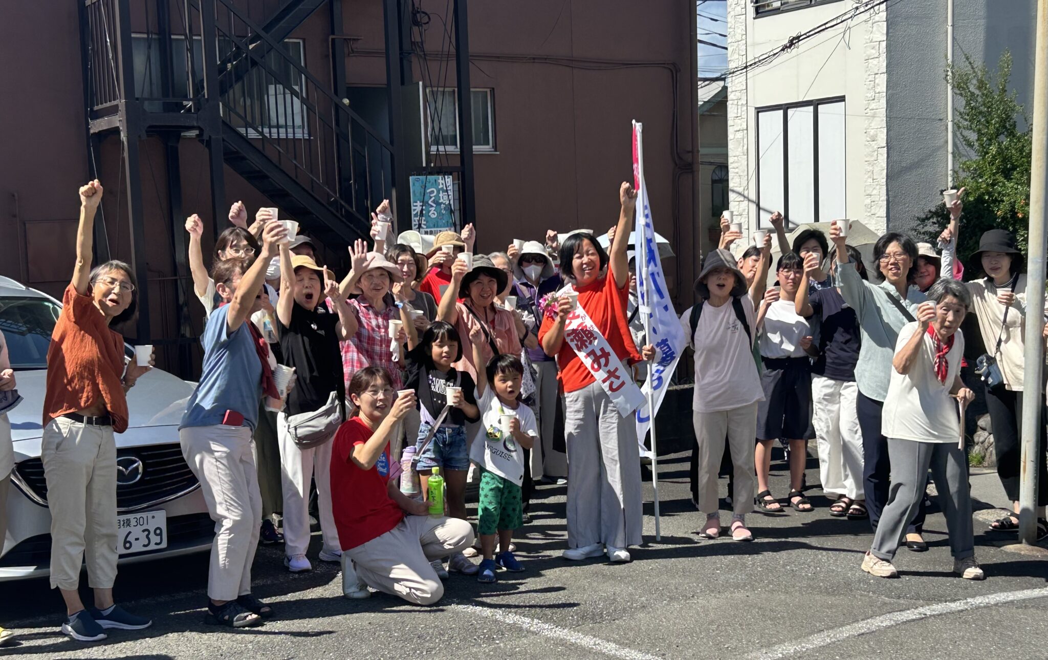 9/15座間市議選がスタートしました。定数22のところ、現職が18人、新人13人(うち2人は新旧交代)、総勢31人の大激戦となっています。神奈川ネットワーク運動2期目をめざす長瀬みさの出陣式を事務所裏駐車場にて、50人の参加を得て行いました。長瀬みさが活動してきた子育て支援団体アクティブ・ママの30~40代メンバーが大勢集い、座間駅東口で第1声を上げ、座間駅前商店街を練り歩きました。長瀬みさは、この4年間子育て介護、教育に関わる当事者の課題から、多くの市民と共に政策をつくり議会で提案を行ってきました。また現在大きな問題である有機フッ素化合物による地下水汚染について、原因究明と対策、市民の健康調査を求めて市民による運動をつくってきています。長瀬みさの2期目実現に向け、この選挙戦、皆の力を結集していきます。