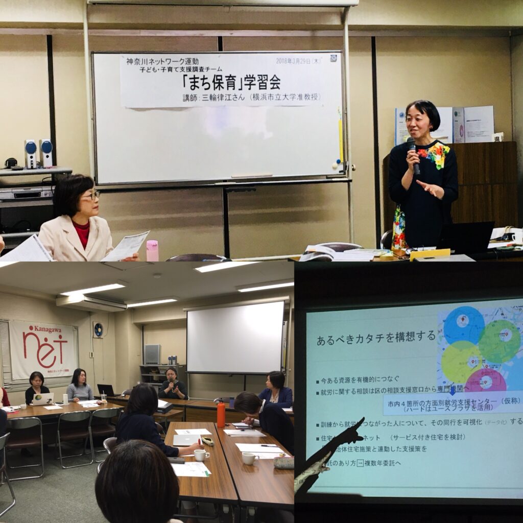 神奈川ネットの政策制度研究会、プロジェクトチームが2017年度に行った調査研究について、学習会やワークショップで報告。 29日には、一時保育を中心に調査を進めてきた子ども・子育て支援調査チームが、三輪律江さ ん(横浜市立大学准教授)を迎えた学習... -