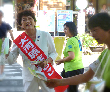 川崎市新百合ケ丘駅から川崎駅まで川崎を縦断、佐々木ゆみこ県議(宮前区)、渡辺あつこ市議(宮前区)、前田絹子元市議(幸)、山口和子(元市議)を始め、たくさんのボランティアの皆さんと大河原まさこさんをアピール! 大河原まさこさんの6つの政策 -
