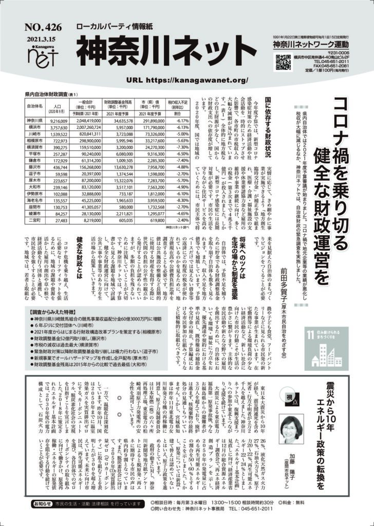 1面 ■コロナ禍を乗り切る健全な財政運営を 前田多賀子(厚木市民自治をめざす会) 国に依存する財政状況 表:県内自治体財政調査(表1) 将来へのツケは生活の場から制度を提案 健全な財政とは 【調査からみえた特徴】 ■視点 ... -