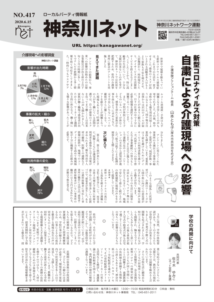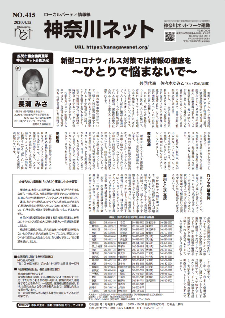1面 ▪️新型コロナウィルス対策では情報の徹底を 〜ひとりで悩まないで〜 共同代表 佐々木ゆみこ(ネット宮前/県議) 教育現場 高齢者 DVや児童虐待 雇用と生活支援 《表:神奈川県内の市区町村社会福祉協議会一覧... -